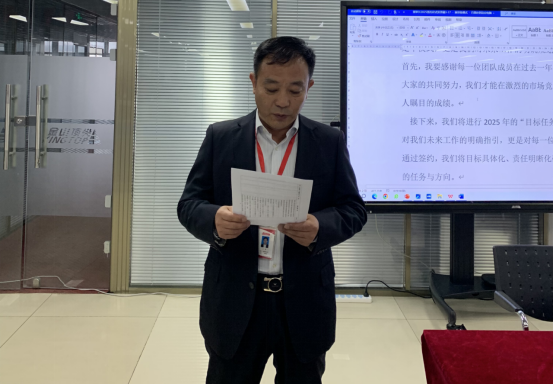 會(huì )議伊始,公司董事長(cháng)于洋總發(fā)表講話(huà)。目標責任書(shū)的簽約不僅對我們未來(lái)工作有了明確的指引,更是對每一位業(yè)務(wù)人員的責任與期望。通過(guò)簽約,我們將目標具體化、責任明晰化,確保每一個(gè)人都清楚自己的任務(wù)與方向。希望大家從這一刻起,改變自我,以高度責任感和使命感,認真對待每一項任務(wù),確保目標如期完成。我們要以團隊的力量,共同迎接挑戰,創(chuàng )造更加輝煌的業(yè)績(jì)!