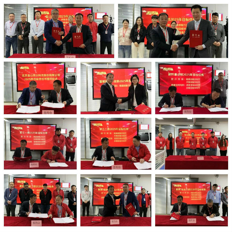 為明確目標,壓實(shí)責任,2025年3月17日北京金山頂尖科技股份有限公司隆重舉行了2025年目標任務(wù)簽約儀式。公司總經(jīng)理及各業(yè)務(wù)部門(mén)負責人分別簽署了2025年目標責任書(shū),為新一年的工作指明了方向,同時(shí)也為公司各業(yè)務(wù)戰線(xiàn)正式拉開(kāi)了奮斗的序幕。
